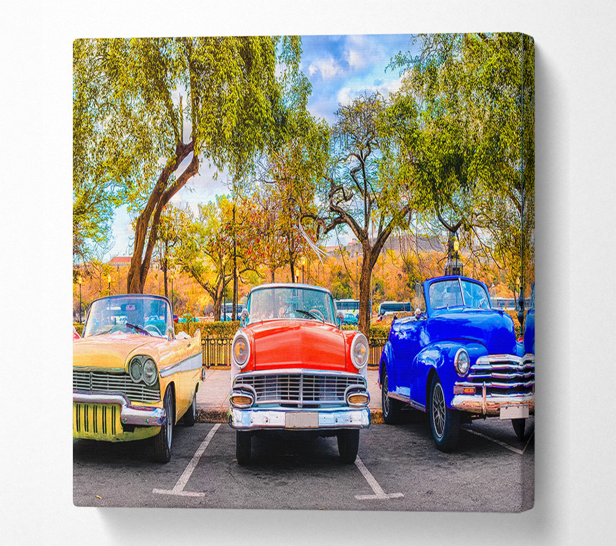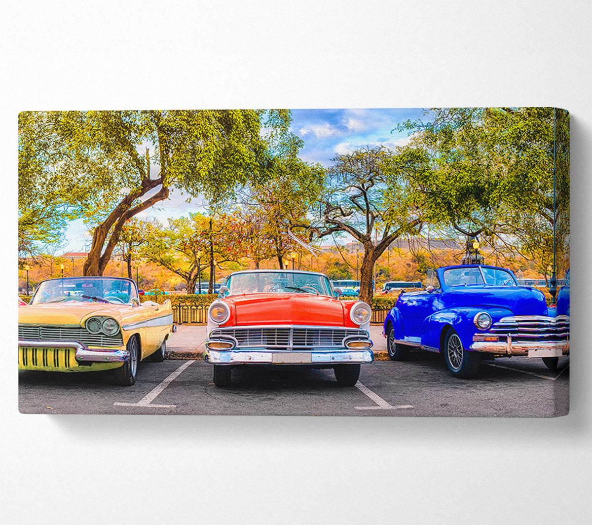 A Trio Of American Muscle Cars Canvas Wall Art -